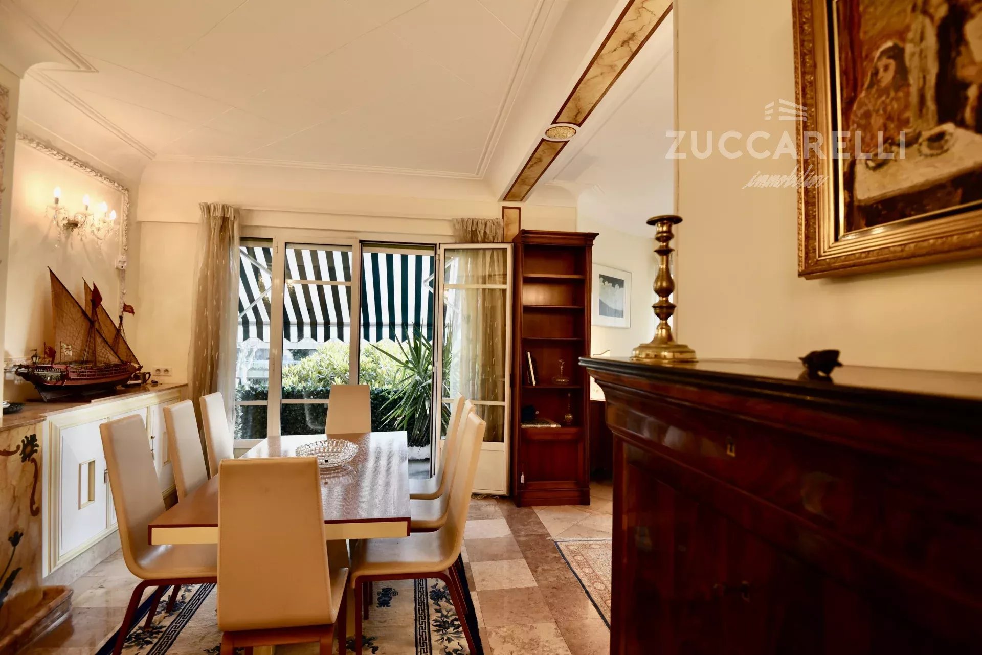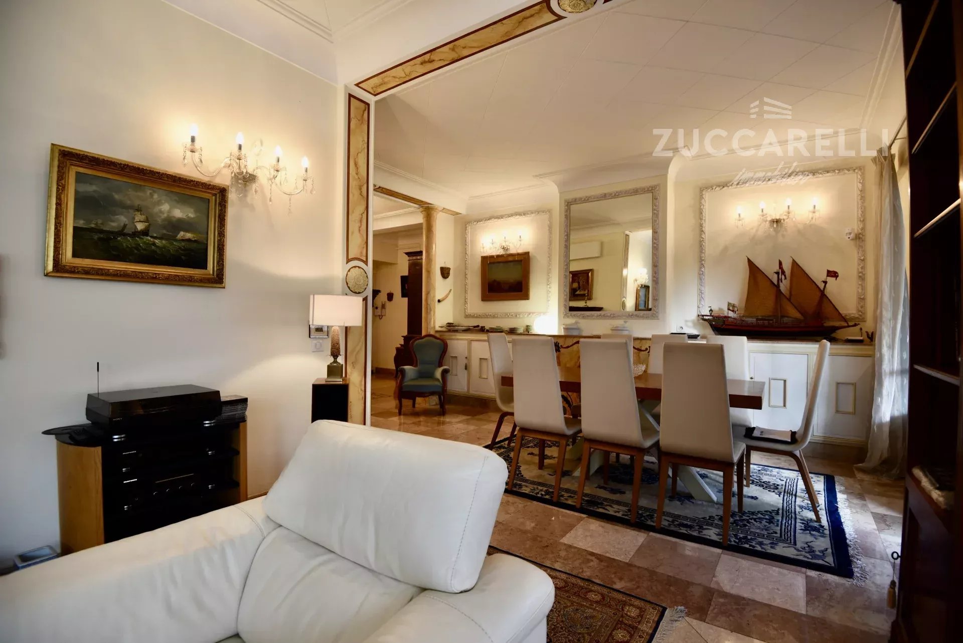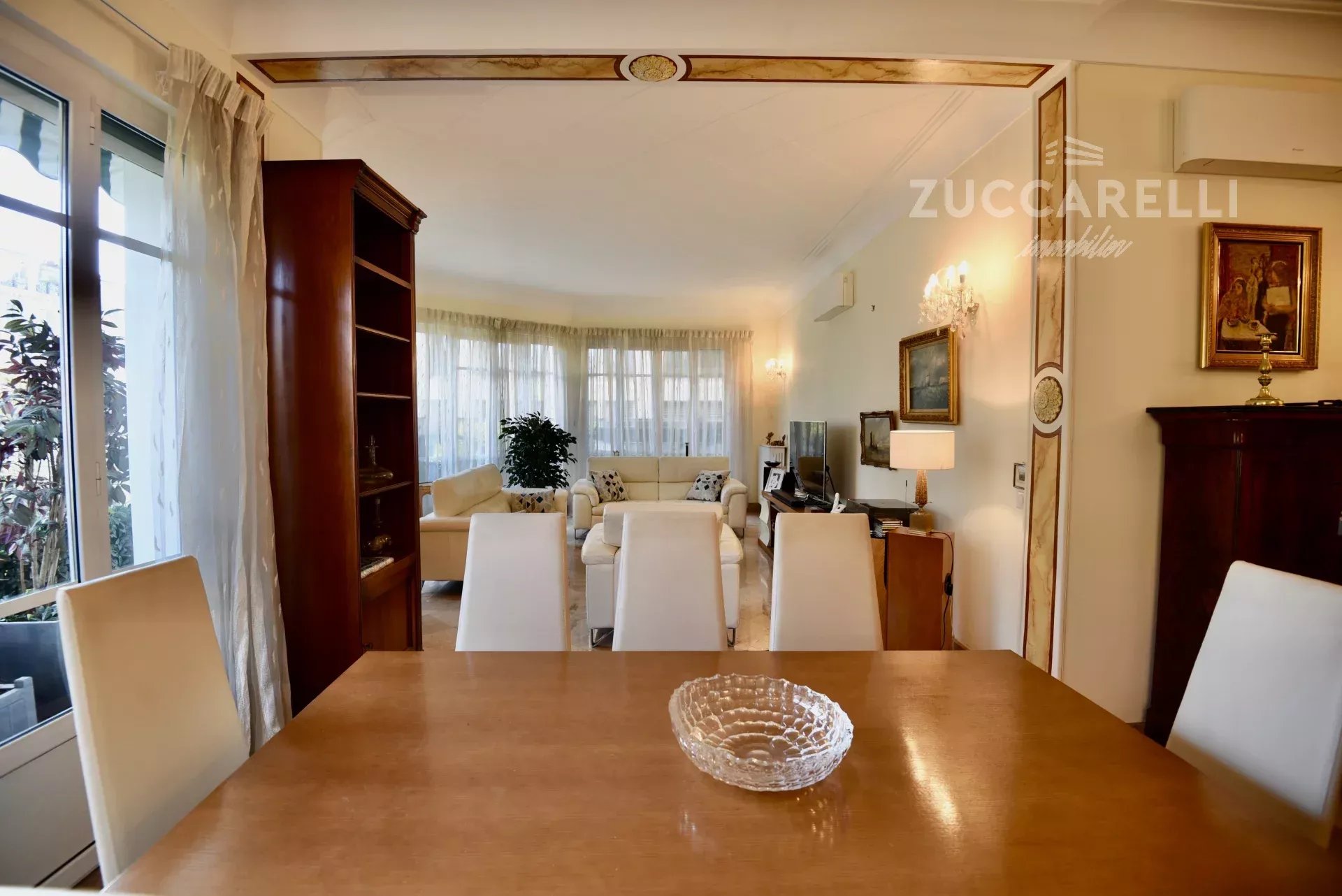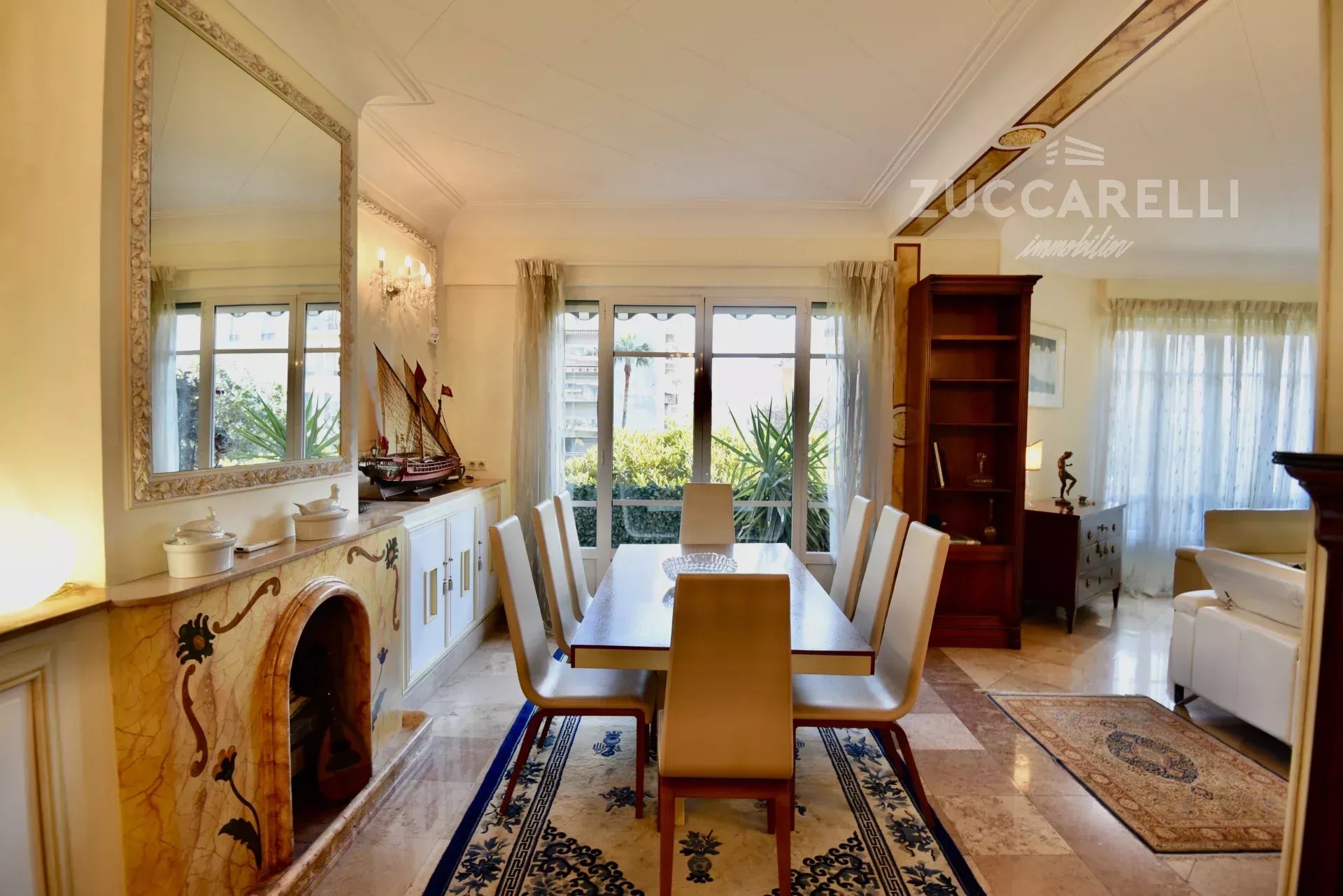 Cet appartement de type 4 pièces, d’une superficie habitable de 130 m², s’ouvre sur un grand hall d’entrée menant à une superbe pièce de vie, salon et salle à manger, baignée de lumière. L'ensemble se distingue par une hauteur sous plafond de 3 mètres, d'un sol en marbre, de belles moulures et d'une belle terrasse exposée plein sud, garantissant une luminosité idéale tout au long de la journée.