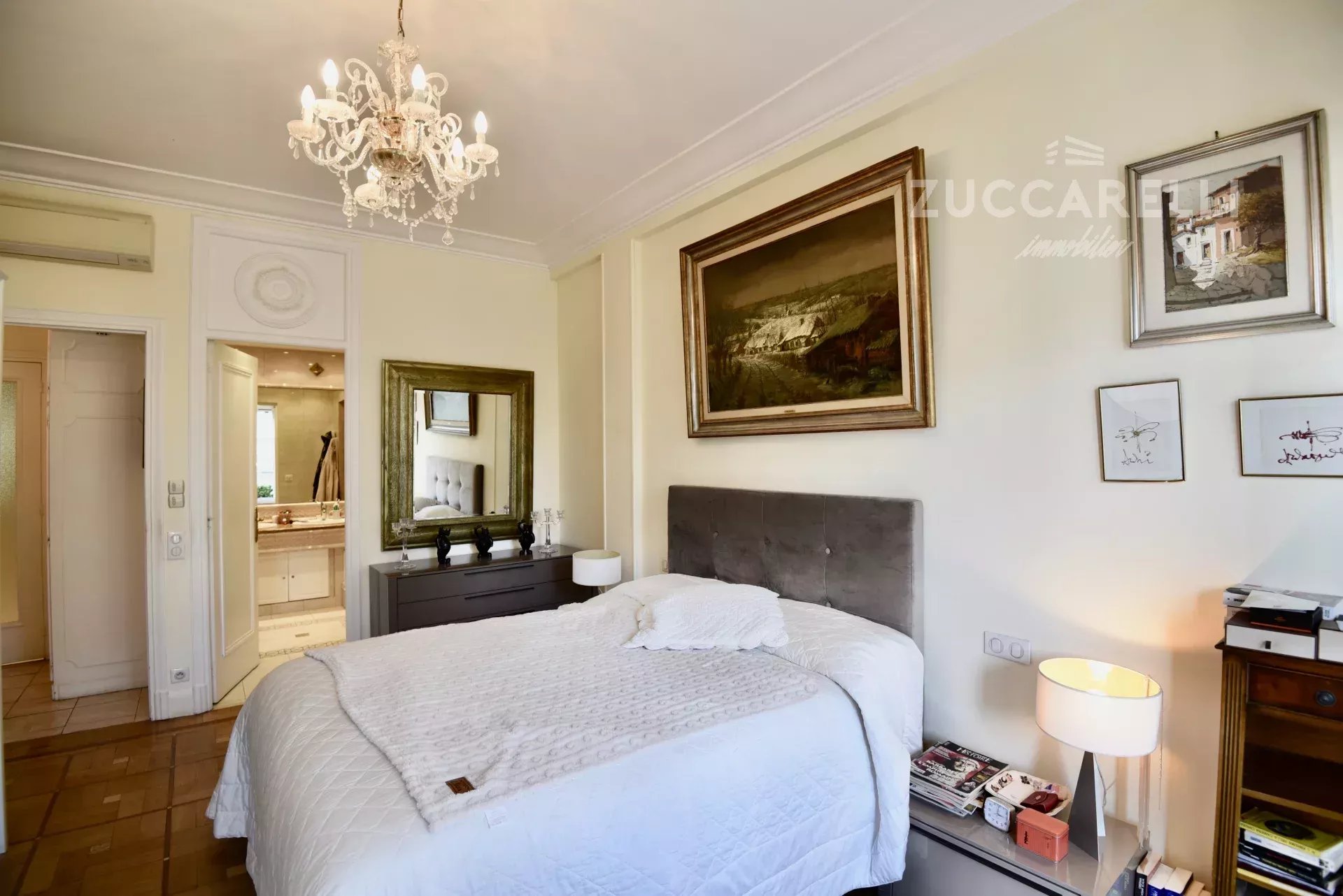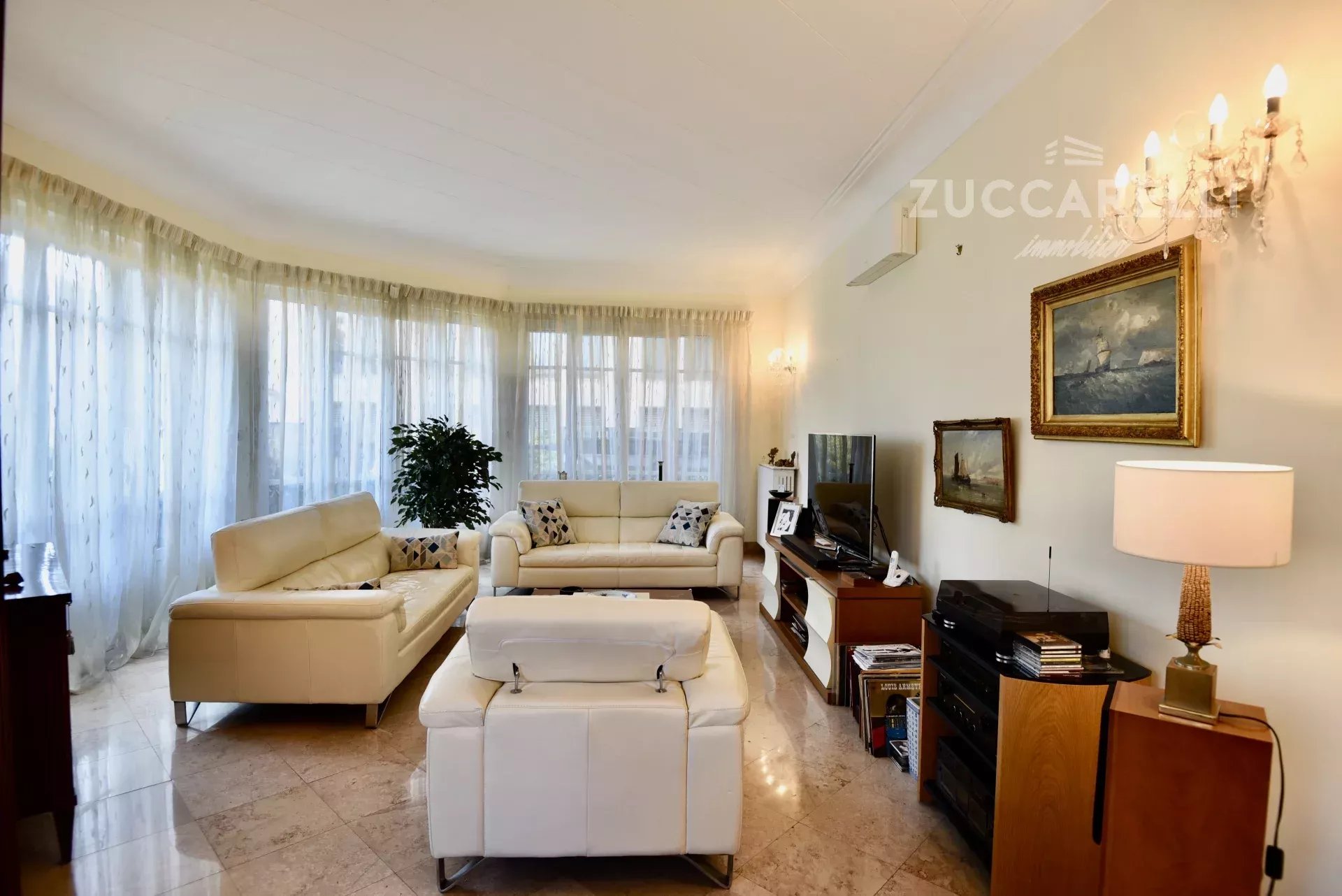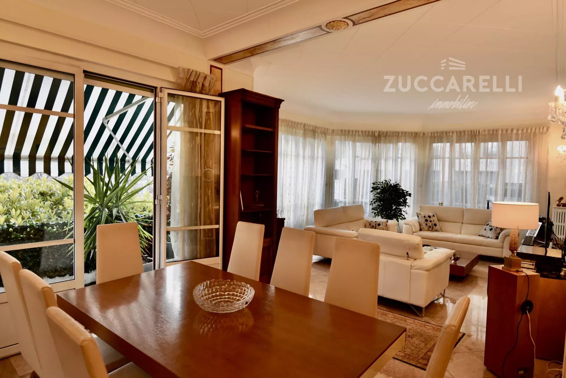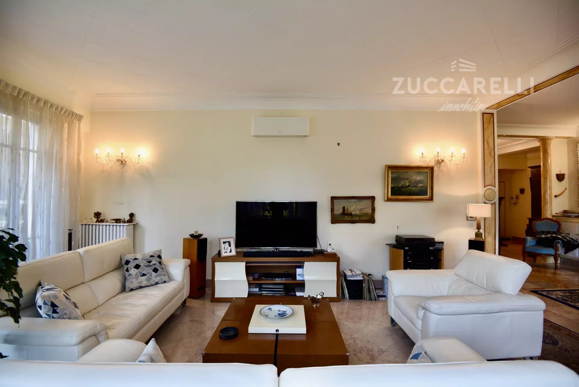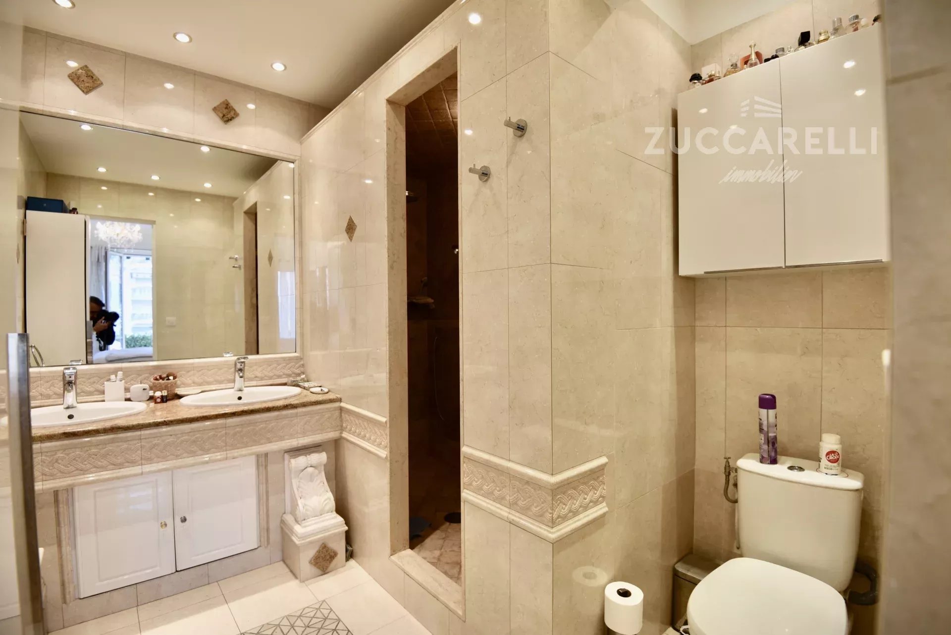 Cet appartement de type 4 pièces, d’une superficie habitable de 130 m², s’ouvre sur un grand hall d’entrée menant à une superbe pièce de vie, salon et salle à manger, baignée de lumière. L'ensemble se distingue par une hauteur sous plafond de 3 mètres, d'un sol en marbre, de belles moulures et d'une belle terrasse exposée plein sud, garantissant une luminosité idéale tout au long de la journée.